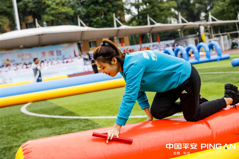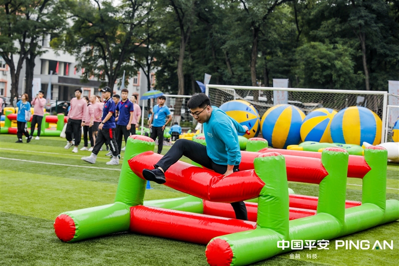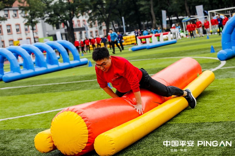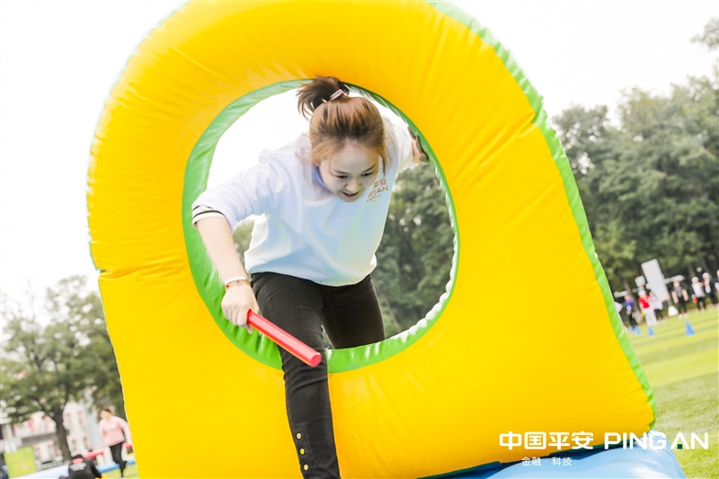 组合接力【参赛人数】 若干【比赛器材】 大型充气道具【比赛方法】4名参赛队员按顺序在起跑线后准备,裁判发令后,第1名队员依次穿过“充气跨栏、平衡木、钻网通道、鱼跃龙门”环节后返回起点,第2名队员同样的方式前进,以最后1名队员身体任意部位触及终点线所在的垂直平面为计时结束,用时少着名次列前。